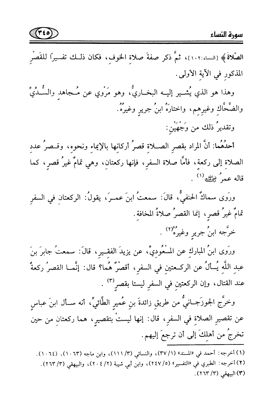 الصلاةِ إلى ركعةٍ، فأمَّا صلاة السفرِ، فإنها ركعتانِ، وهي تمامٌ غيرُ قصرٍ، كما قاله عمرُ - رضي الله عنه -.