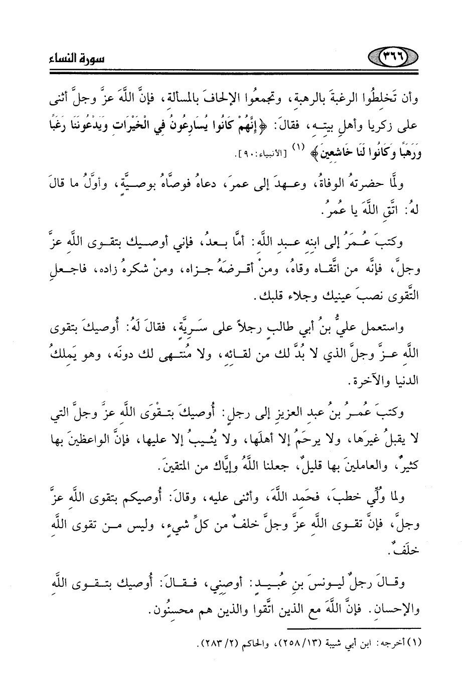 وكتبَ عُمرُ بنُ عبدِ العزيزِ إلى رجلٍ: أُوصيكَ بتقْوَى اللَّهِ عزَ وجلَّ التي