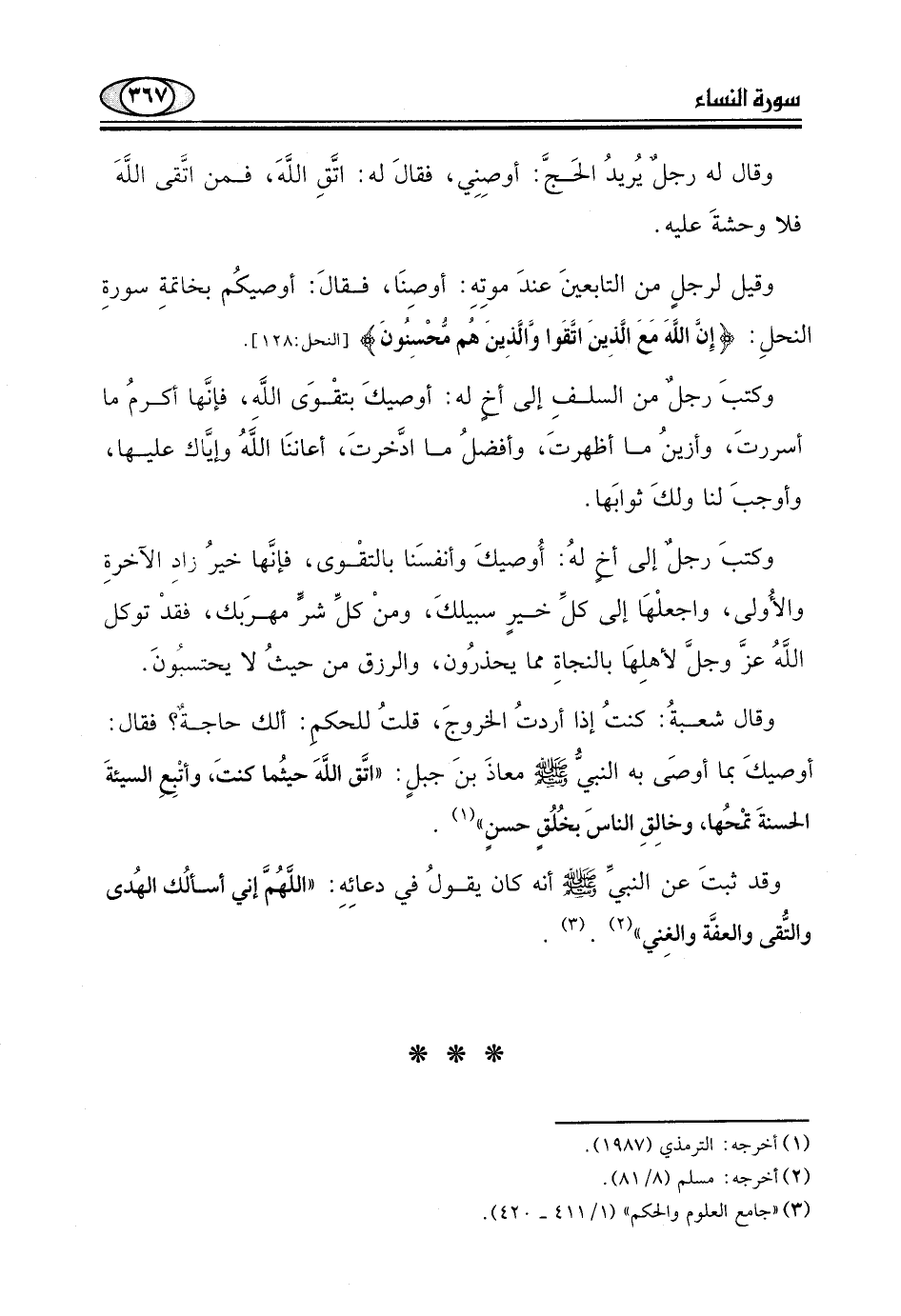 النحلِ: (إِنَّ اللَّهَ معَ الَّذِينَ اتَّقَوا وَّالَّذِينَ هُم مُّحْسِنُون.