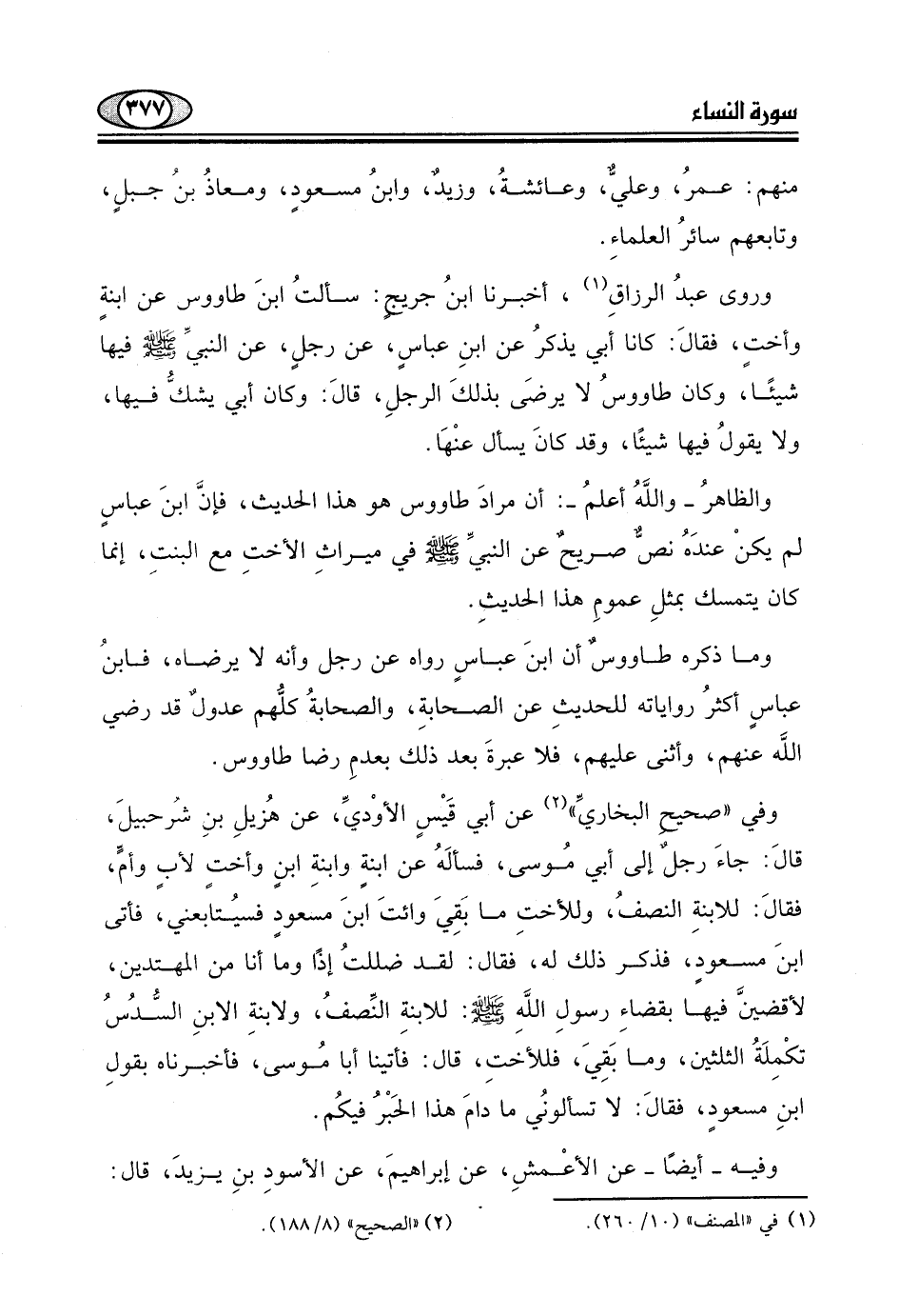 وروى عبدُ الرزاقِ، أخبرنا ابنُ جريج: سألتُ ابنَ طاووس عن ابنةٍ