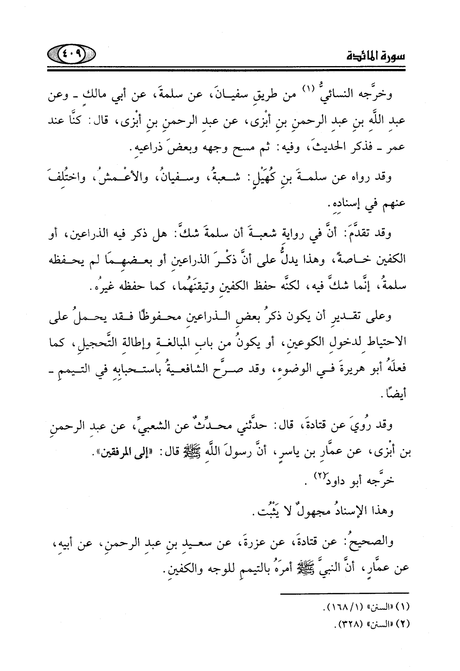 بن أبْزى، عن عمَّارِ بن ياسرٍ، أنَّ رسولَ اللَهِ - صلى الله عليه وسلم - قال: "إلى المرفقين ".