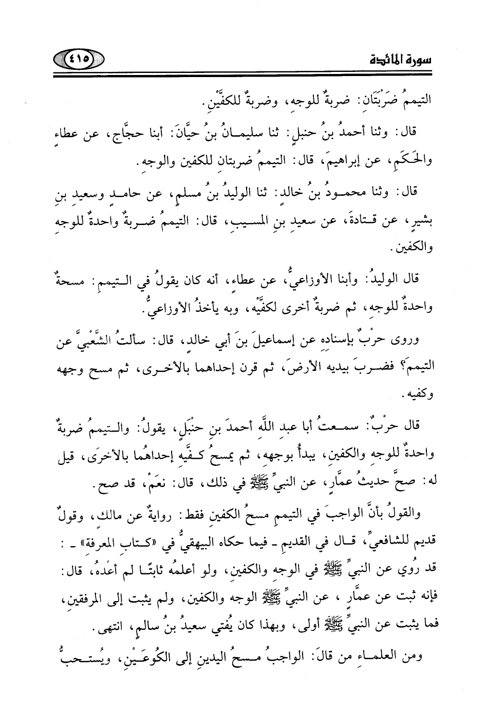 قال حرْبٌ: سمعتُ أبا عبدِ اللَّهِ أحمدَ بنِ حنْبَل، يقول: والتيممُ ضربةٌ