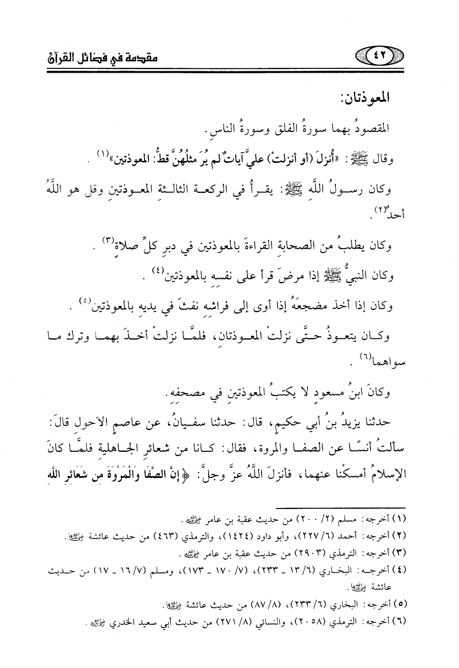 وكانَ ابنُ مسعودٍ لا يكتبُ المعوذتينِ في مصحفِهِ.