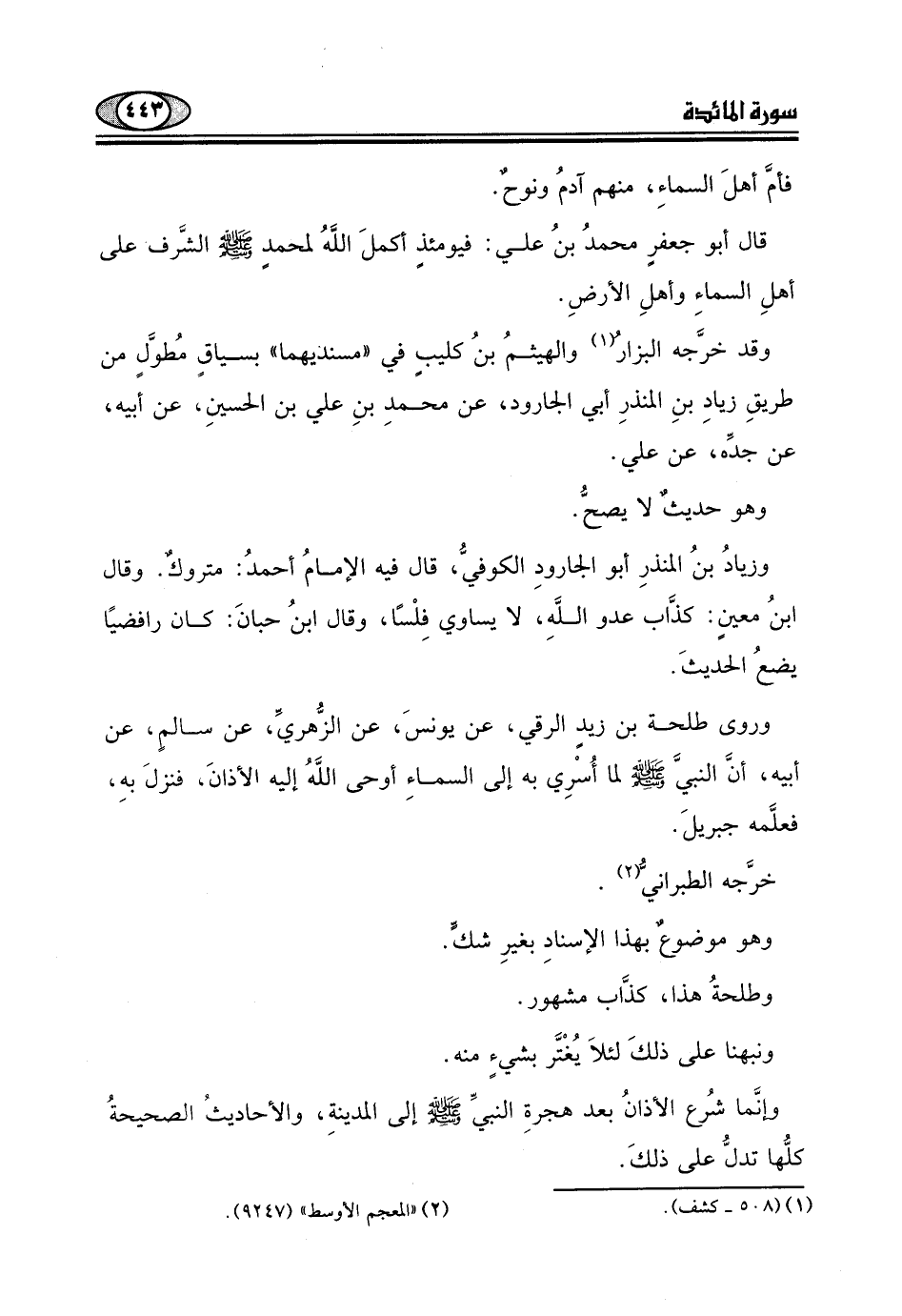 قال أبو جعفرِ محمدُ بنُ علي: فيومئذِ أكملَ اللَهُ لمحمدٍ - صلى الله عليه وسلم - الشَّرف - على أهلِ السماءِ وأهلِ الأرضِ.