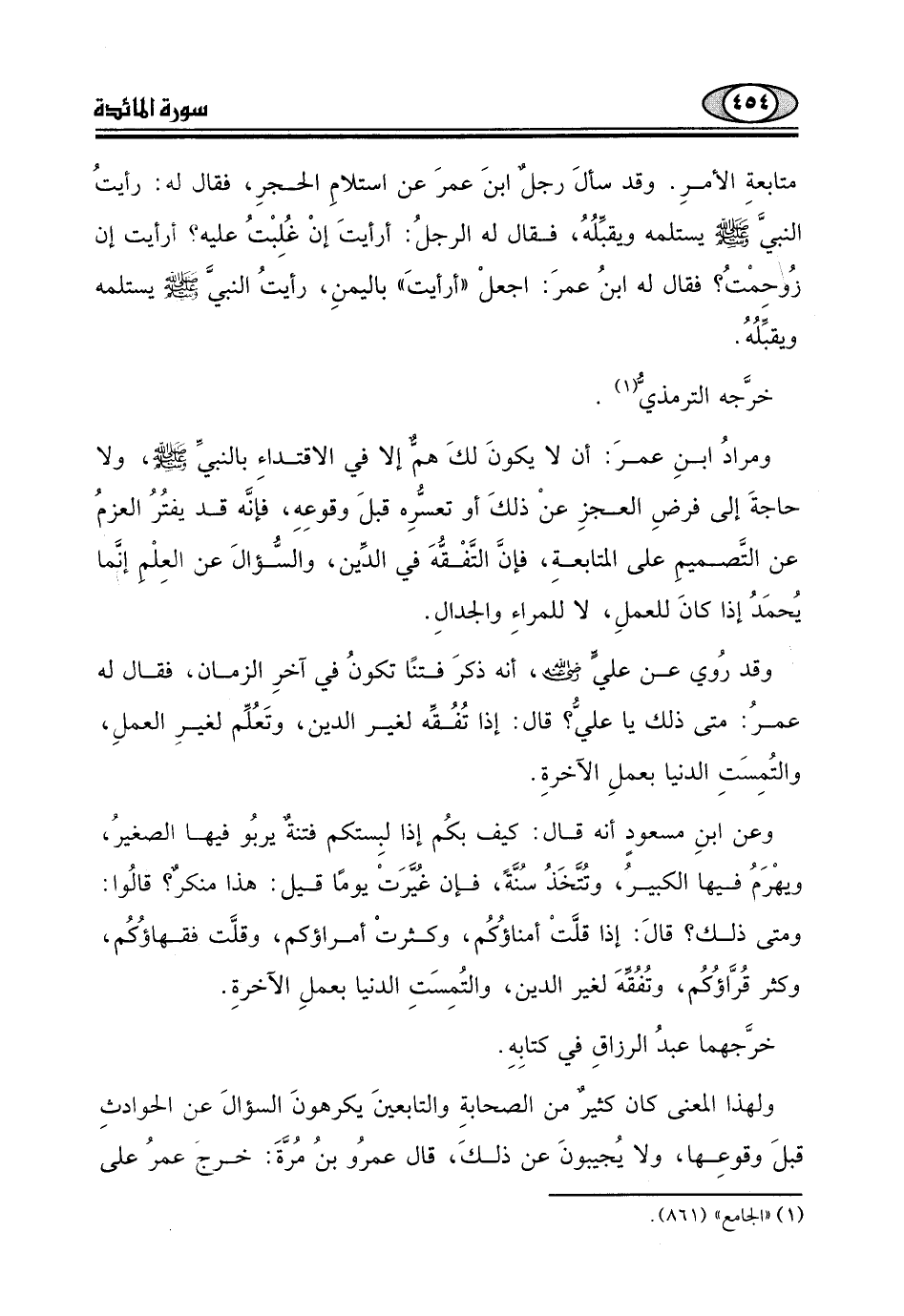 متابعةِ الأمرِ. وقد سألَ رجلٌ ابنَ عمرَ عن استلامِ الحجرِ، فقال له: رأيتُ