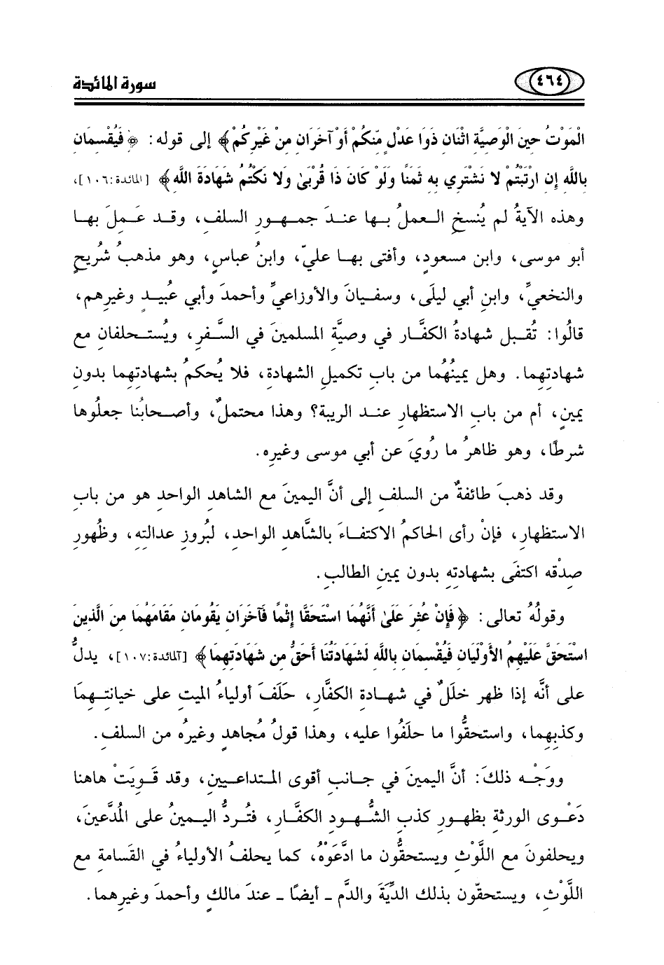 الْمَوْتُ حِينَ الْوَصِيَّةِ اثْنَانِ ذَوَا عَدْلٍ مِّنكُمْ أَوْآخَرَانِ مِنْ غَيْرِكمْ) إلى قوله: (فَيُقْسِمَانِ بِاللَّهِ إِنِ ارْتَبْتُمْ لا نَشْتَرِي بِهِ ثَمَنًا وَلَوْ كَانَ ذَا قُرْبَى وَلا نَكتُمُ شَهَادَةَ اللَّهِ) .