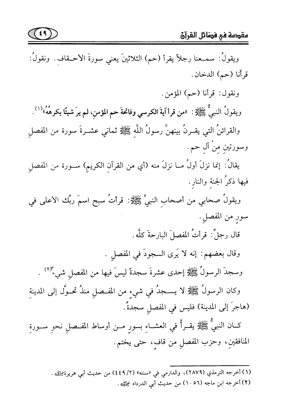 والقرائنُ التي يقرنُ بينهنَّ رسولُ اللَّهِ - صلى الله عليه وسلم - ثماني عشرةَ سورة من الفصلِ وسورتينِ مِنْ آلِ حم.