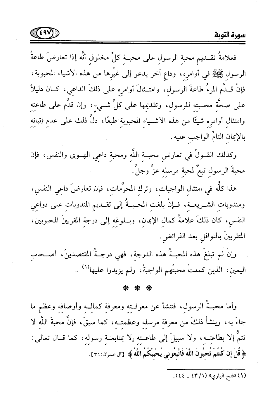 (قُلْ إِنْ كُنْتُمْ تُحِبُّونَ اللَّهَ فَاتَّبِعُونِي يُحْبِبْكُمُ اللَّهُ) .
