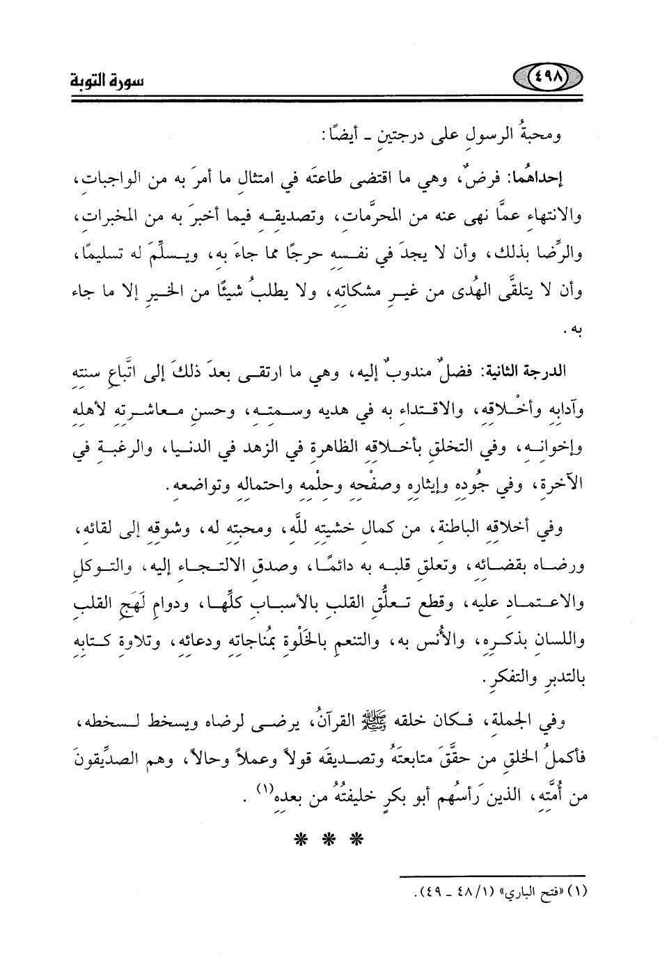 ومحبةُ الرسولِ على درجتينِ - أيضًا: