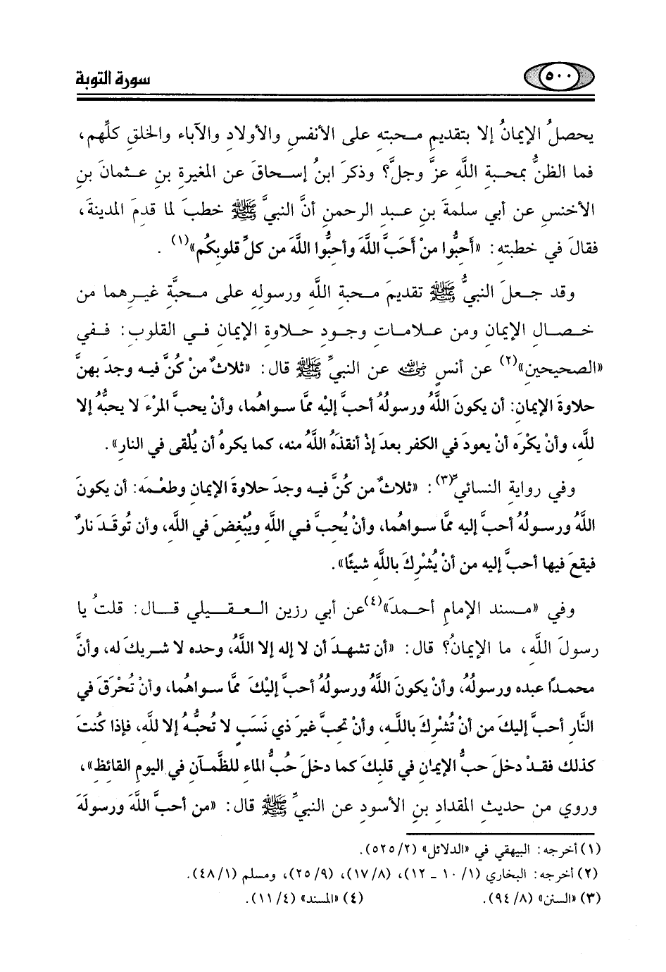 وقد جعلَ النبيُّ - صلى الله عليه وسلم - تقديمَ محبةِ اللَّهِ ورسولِهِ على محبَّةِ غيرِهما من خصالِ الإيمانِ ومن علاماتِ وجودِ حلاوةِ الإيمانِ في القلوبِ: