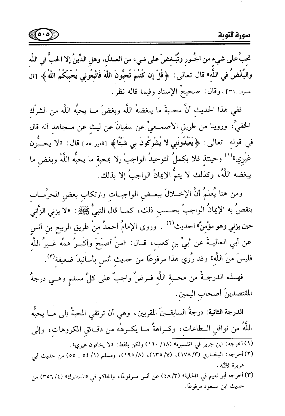 فهذه الدرجةُ من محبةِ اللَّهِ فرضٌ واجبٌ على كلِّ مسلم وهي درجةُ