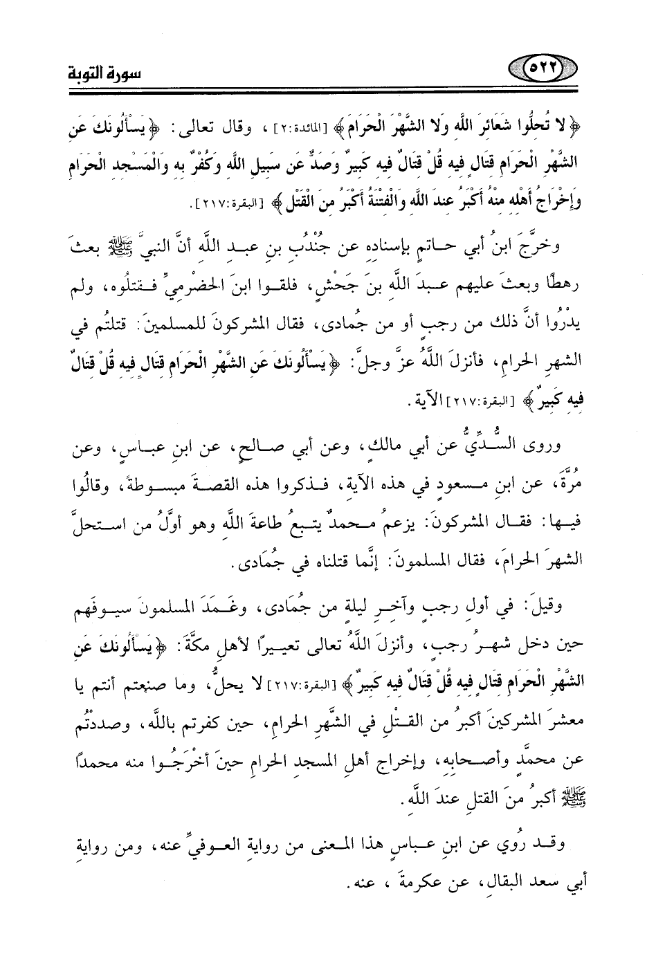 (يَسْأَلُونَكَ عَنِ الشَّهْرِ الْحَرَامِ قِتَالٍ فِيهِ قُلْ قِتَالٌ فِيهِ كَبِيرٌ)
