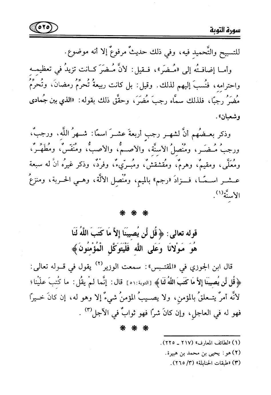 واحترامِهِ، فنُسبَ إليهم لذلك. وقيل: بل كانت ربيعةُ تُحرِّمُ رمضانَ، وتُحرِّمُ مُضَرُ رجبًا، فلذلك سمَّاه رجبَ مُضَرَ، وحقَّق ذلك بقوله: "الذي بين جُمادى وشعبان ".