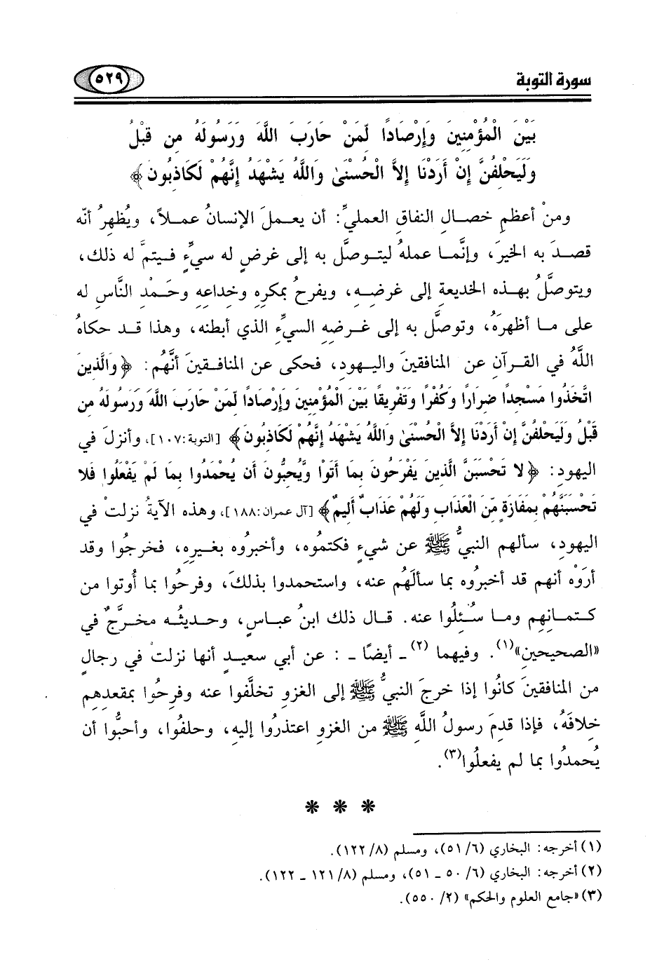 وأنزلَ في اليهودِ: (لَا تَحْسَبَنَّ الَّذِينَ يَفْرَحُونَ بِمَا أَتَوْا وَيُحِبُّونَ أَنْ يُحْمَدُوا بِمَا لَمْ يَفْعَلُوا فَلَا تَحْسَبَنَّهُمْ بِمَفَازَةٍ مِنَ الْعَذَابِ وَلَهُمْ عَذَابٌ أَلِيمٌ (188) .