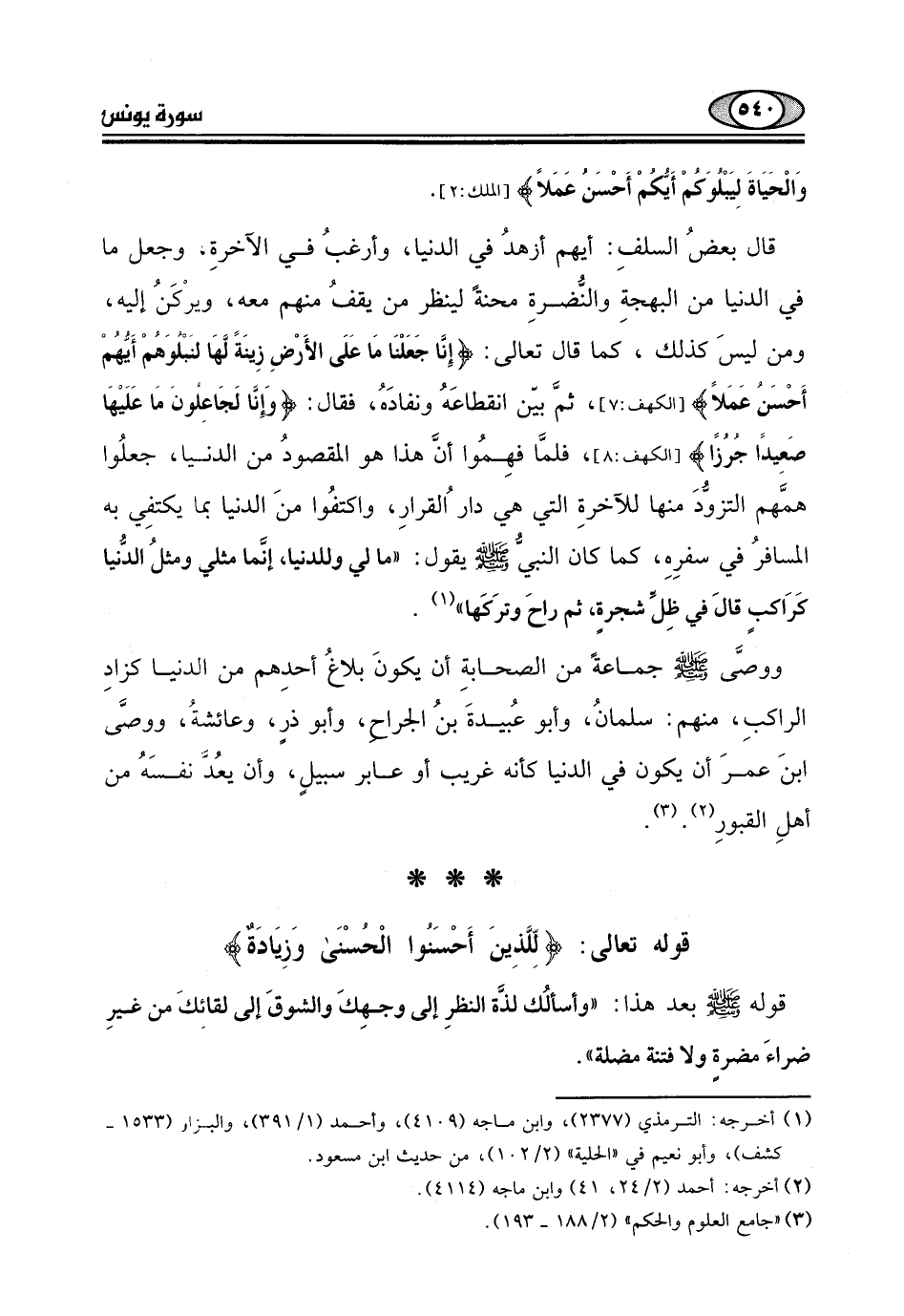 قوله تعالى: (لِلَّذِينَ أَحْسَنُوا الْحُسْنَى وَزِيَادَةٌ)