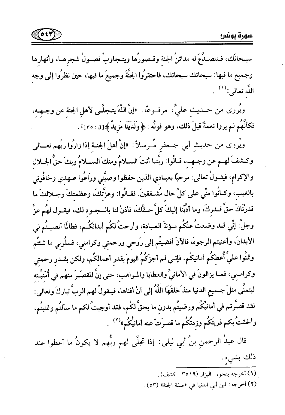 وكشفَ لهم عن وجهِهِ، قالُوا: ربَّنا أنتَ السلامُ ومنكَ السلامُ وبكَ حقُّ الجلالِ والإكرام، فيقولُ تعالى: مرحبًا بعبادِي الذين حفظوا وصيَّثتي ورَاعُوا عهدِي وخافُوني بالغيبِ، وكانُوا منِّي على كلِّ حال مُشفقينَ.