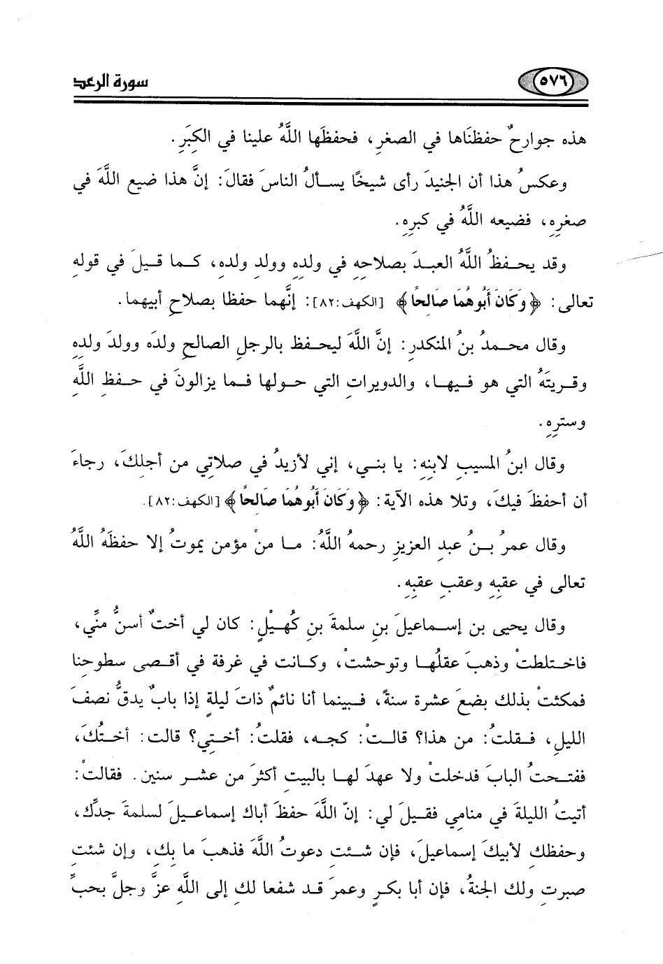 وقد يحفظُ اللَّهُ العبدَ بصلاحِهِ في ولدِهِ وولدِ ولدهِ، كما قيلَ في قولهِ