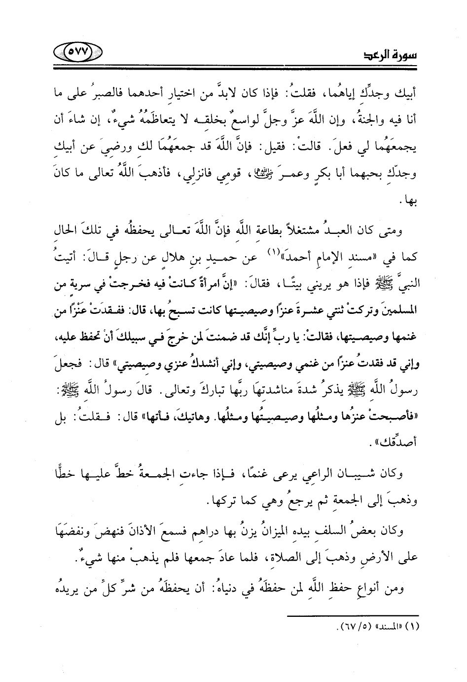 ومتى كان العبدُ مشتغلاً بطاعةِ اللَّهِ فإنَّ اللَّهَ تعالى يحفظُه في تلكَ الحالِ
