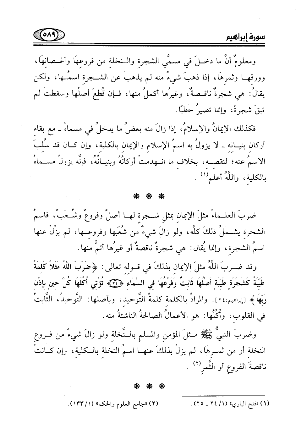 وقد ضربَ اللَّهُ مثلَ إلإيمانِ بذلكَ في قولِهِ تعالى: (ضَرَبَ اللَّهُ مَثَلًا كَلِمَةً طَيِّبَةً كَشَجَرَةٍ طَيِّبَةٍ أَصْلُهَا ثَابِتٌ وَفَرْعُهَا فِي السَّمَاءِ (24) تُؤْتِي أُكُلَهَا كُلَّ حِينٍ بِإِذْنِ رَبِّهَ) .