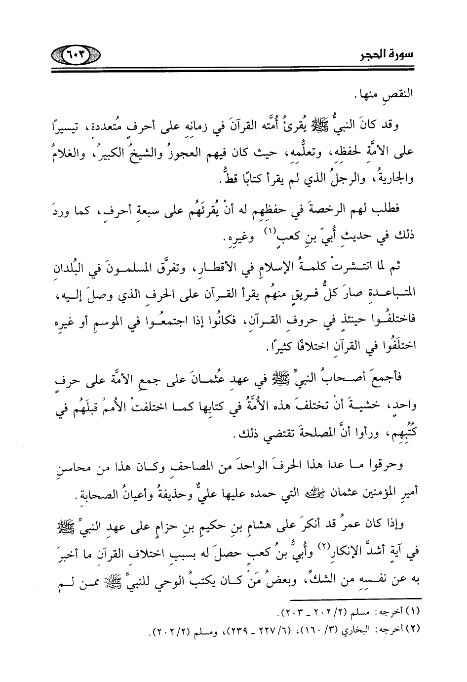 وإذا كان عمرُ قد أنكرَ على هشامِ بنِ حكيم بنِ حزامٍ على عهدِ النبيِّ - صلى الله عليه وسلم - في آيةٍ أشدَّ الإنكارِ وأُبيُّ بنُ كعبٍ حصلَ له بسببِ اختلافِ القرآنِ ما أخبرَ به عن نفسِهِ من الشكِّ، وبعضُ مَنْ كان يكتبُ الوحي للنبيِّ - صلى الله عليه وسلم -