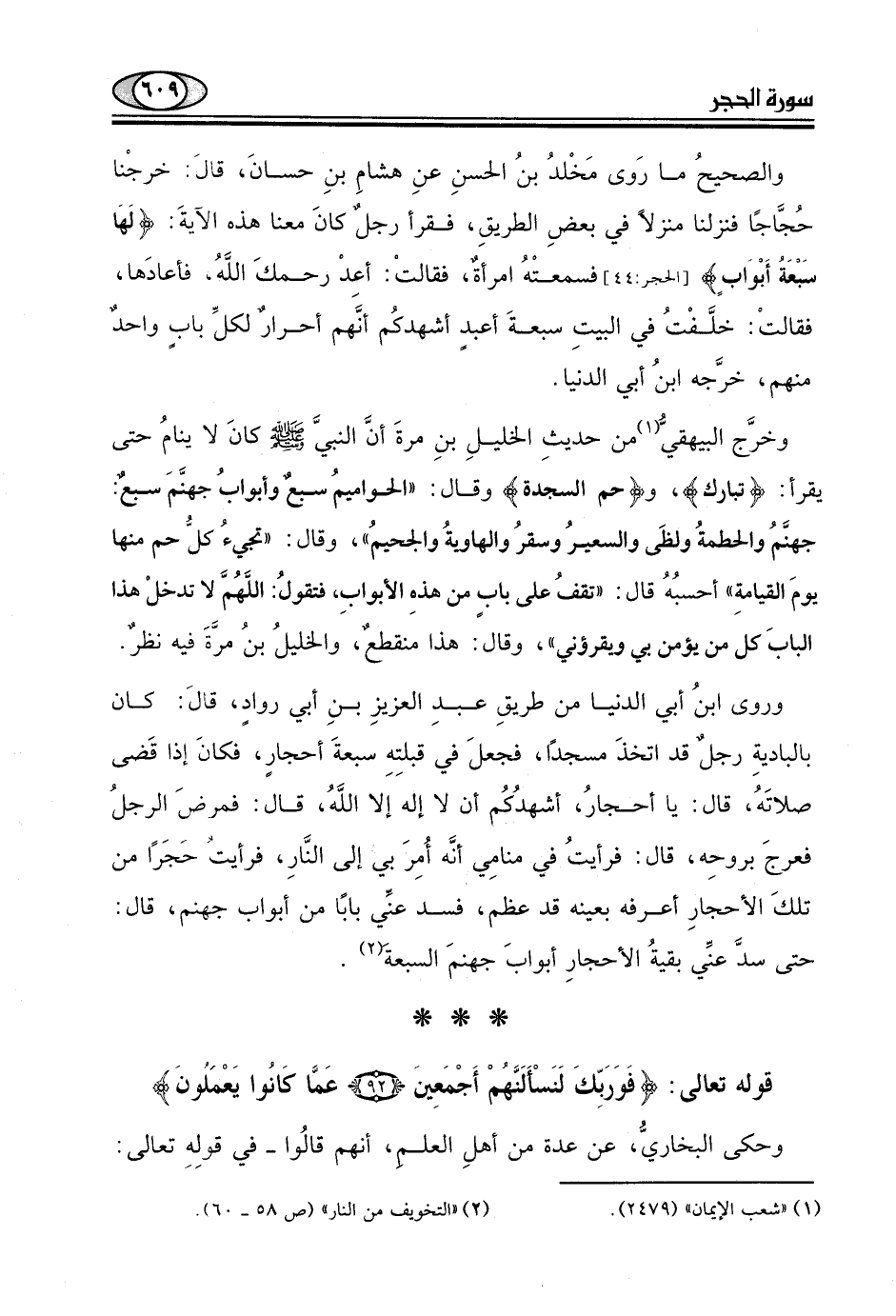 قوله تعالى: (فَوَرَبِّكَ لَنَسْأَلَنَّهُمْ أَجْمَعِينَ (92) عَمَّا كَانُوا يَعْمَلُونَ (93)