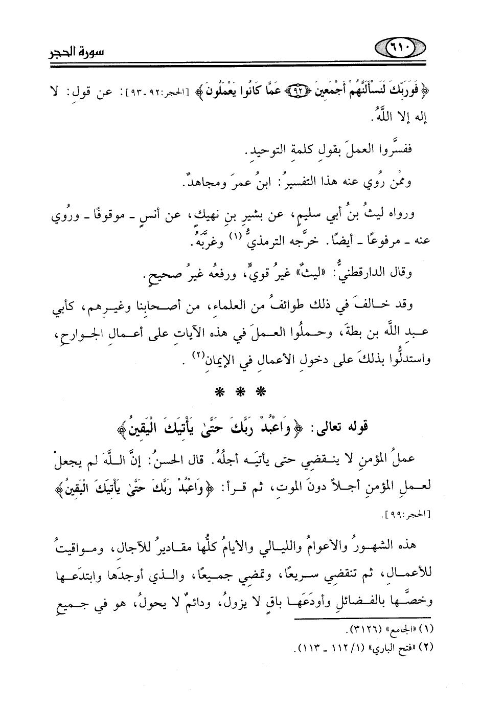 قوله تعالى: (وَاعْبُدْ رَبَّكَ حَتَّى يَأْتِيَكَ الْيَقِينُ (99)