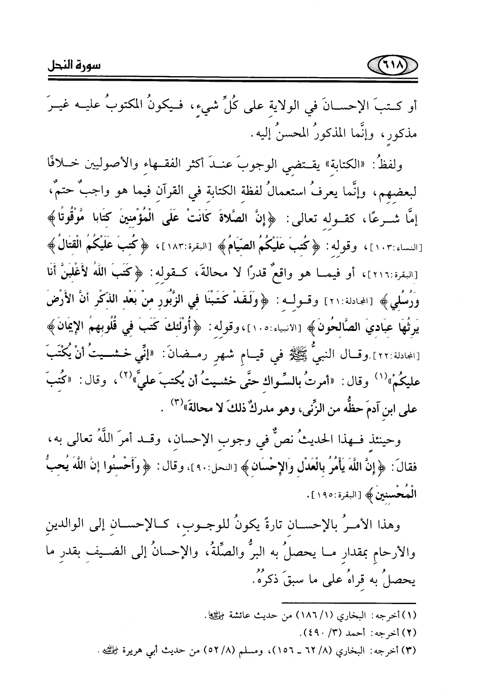 وحينئذٍ فهذا الحديثُ نصّ في وجوبِ الإحسانِ، وقد أمرَ اللَّه تعالى به.