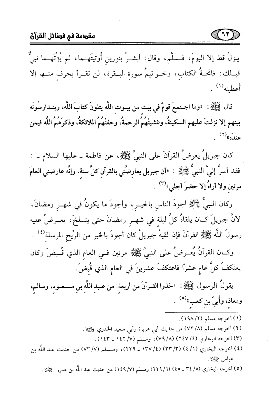 "وما اجتمعَ قومٌ في بيتٍ من بيوتِ اللَّه يتلونَ كتابَ اللَّه، ويتدارسُونَه