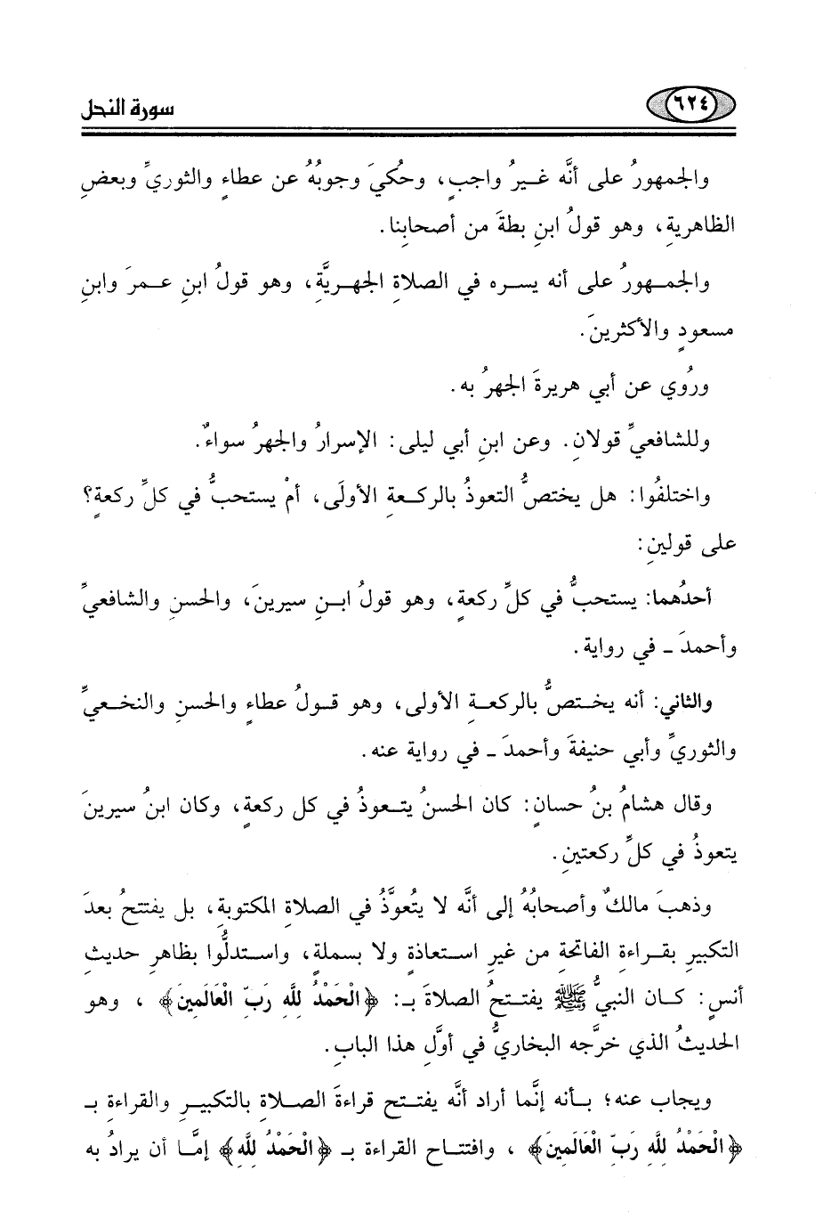 واختلفُوا: هل يختصُّ التعوذُ بالركعةِ الأولَى، أمْ يستحبُّ في كل ركعةٍ؟