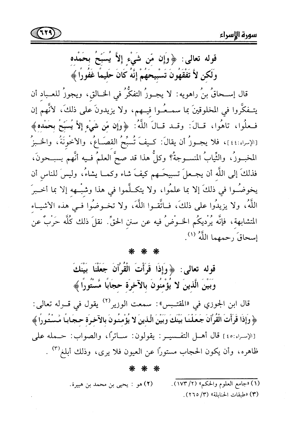 قوله تعالى: (وَإِنْ مِنْ شَيْءٍ إِلَّا يُسَبِّحُ بِحَمْدِهِ وَلَكِنْ لَا تَفْقَهُونَ تَسْبِيحَهُمْ إِنَّهُ كَانَ حَلِيمًا غَفُورًا (44)