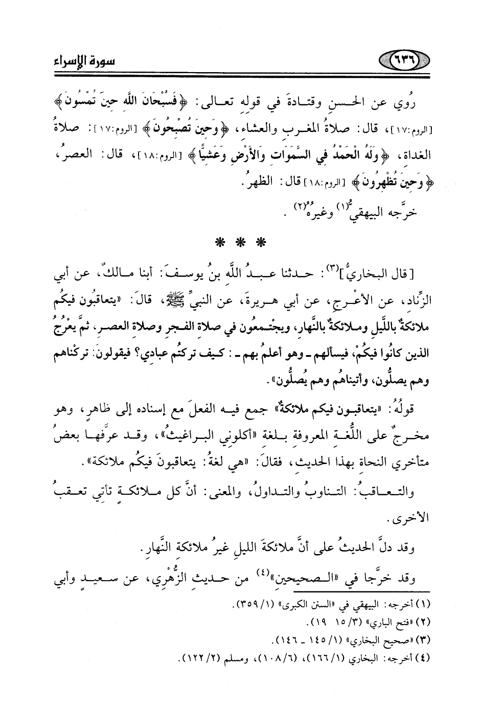 الزِّنادِ، عن الأعْرج، عن أبي هريرةَ، عن النبيِّ - صلى الله عليه وسلم -، قالَ: "يتعاقبون فيكُم ملائكةٌ باللَّيلِ وملائكةٌ بالنهارِ، ويجْتمعُون في صلاةِ الفجرِ وصلاةِ العصرِ، ثمَّ يعْرُج الذين كانُوا فيكُمْ، فيسألهم - وهو أعلمُ بهم -: كيف تركتُم عبادِي؛ فيقولونَ: تركناهم وهم يصلُّون، وأتيناهُم وهم يُصلُّون ".