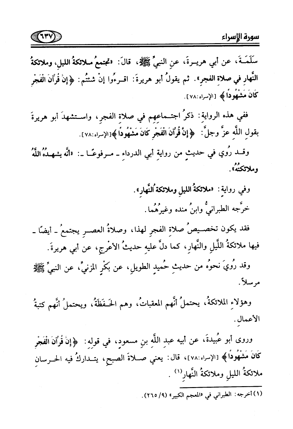 ثم يقولُ أبو هريرةَ: اقرءُوا إن شئتُم: (إِن قُرْآنَ الْفَجْرِ كَانَ مَشْهُودًا) .