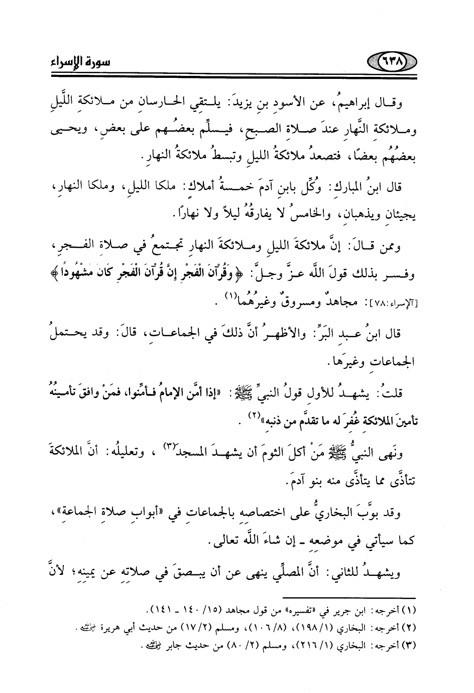 وممن قالَ: إن ملائكةَ الليلِ وملائكةَ النهارِ تجتمعُ في صلاةِ الفجرِ.