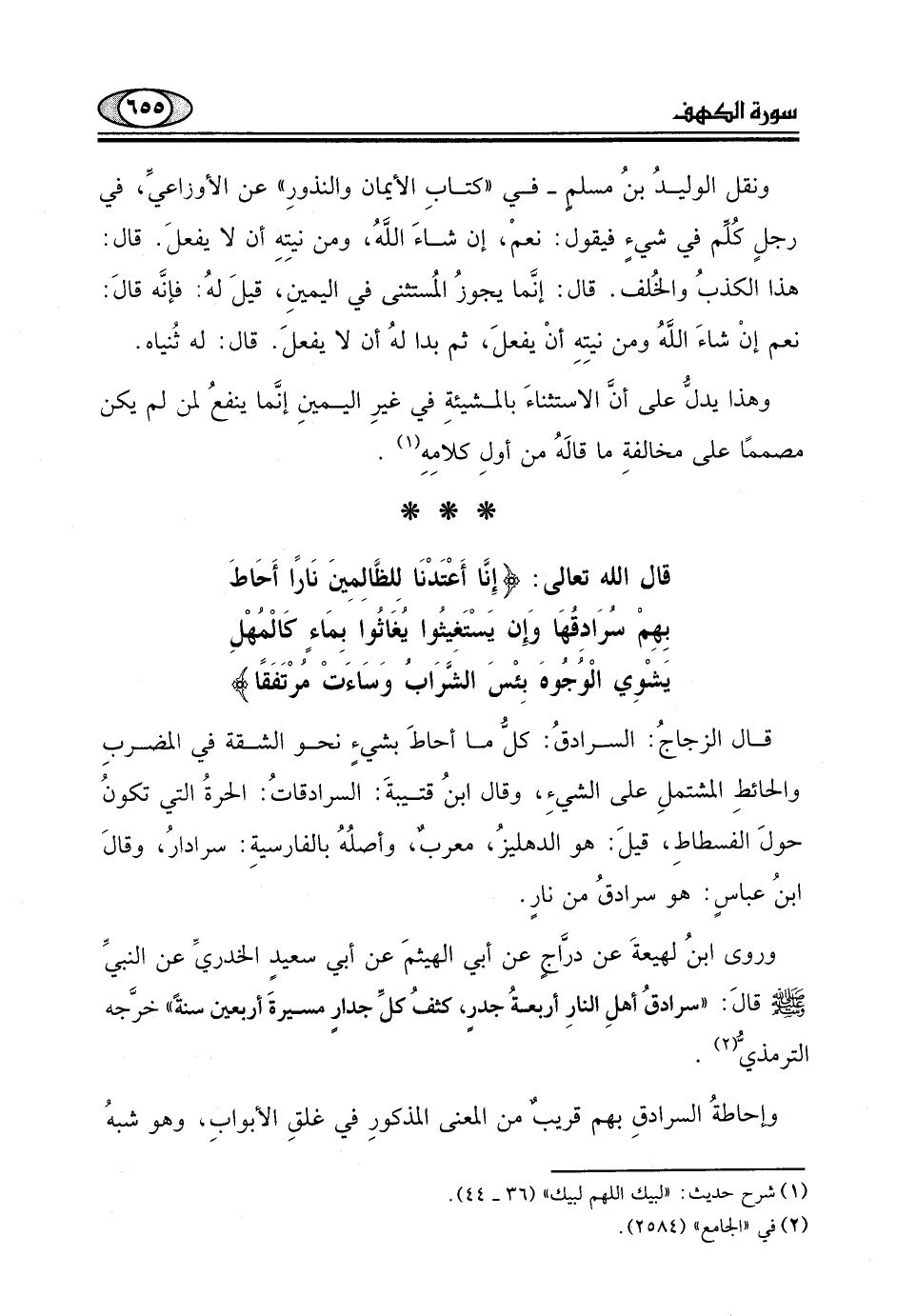 قال الله تعالى: (إِنَّا أَعْتَدْنَا لِلظَّالِمِينَ نَارًا أَحَاطَ بِهِمْ سُرَادِقُهَا وَإِنْ يَسْتَغِيثُوا يُغَاثُوا بِمَاءٍ كَالْمُهْلِ يَشْوِي الْوُجُوهَ بِئْسَ الشَّرَابُ وَسَاءَتْ مُرْتَفَقًا (29)