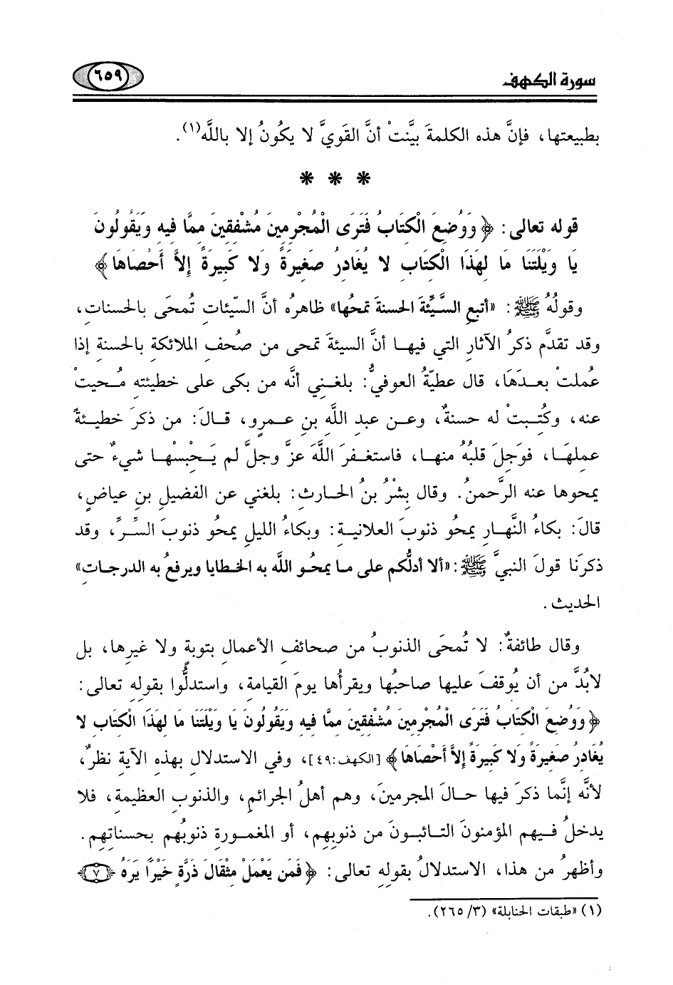قوله تعالى: (وَوُضِعَ الْكِتَابُ فَتَرَى الْمُجْرِمِينَ مُشْفِقِينَ مِمَّا فِيهِ وَيَقُولُونَ يَا وَيْلَتَنَا مَالِ هَذَا الْكِتَابِ لَا يُغَادِرُ صَغِيرَةً وَلَا كَبِيرَةً إِلَّا أَحْصَاهَا)