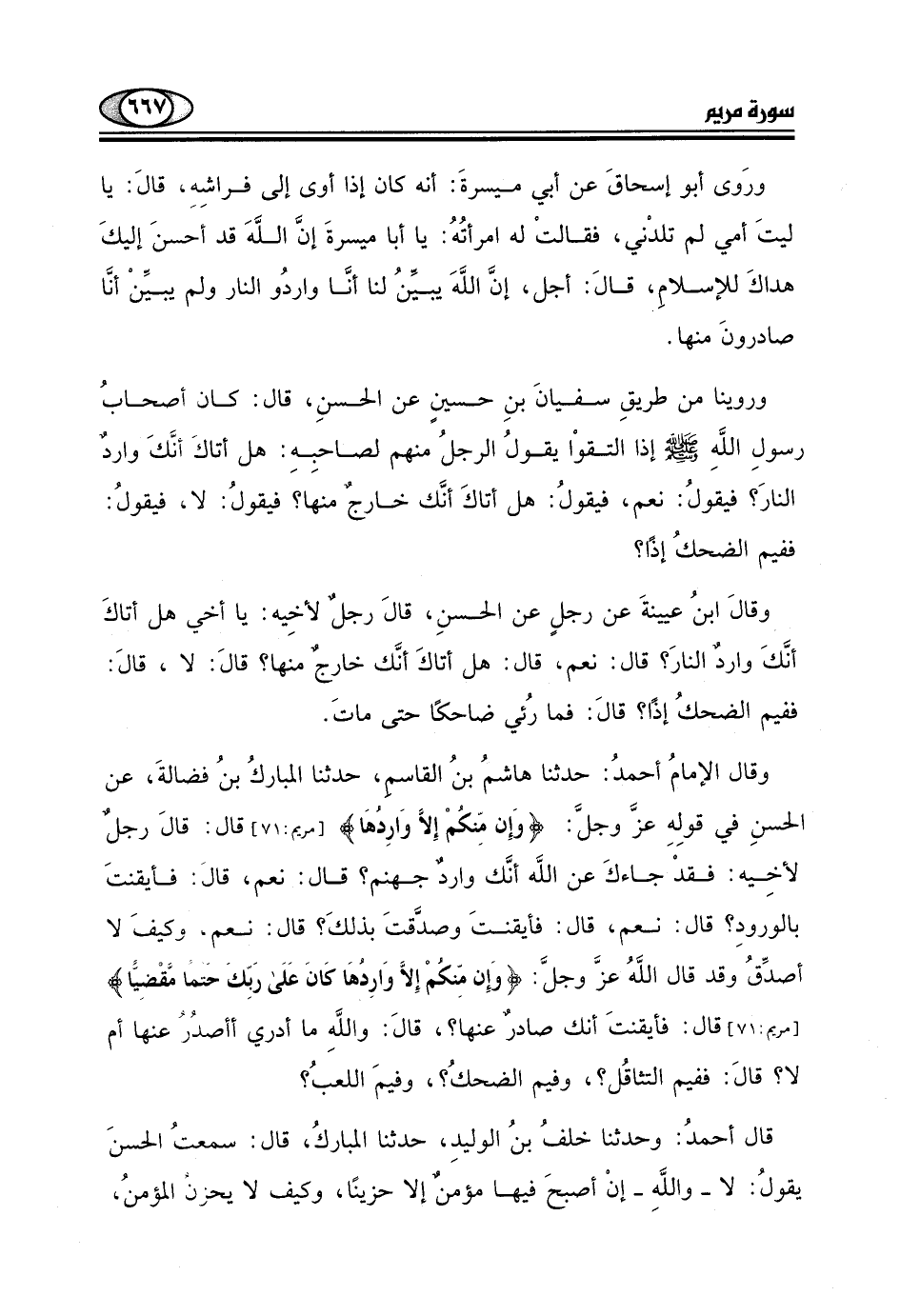 الحسنِ في قولِهِ عزَ وجل: (وَإِن مِّنكُم إِلَّا وَارِدُهَا)