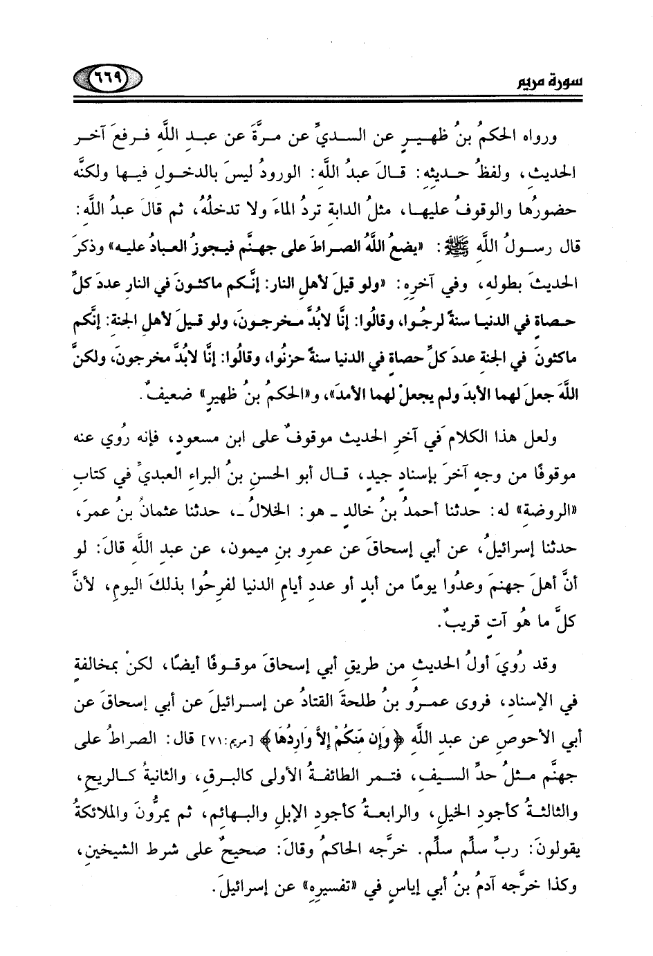 أبي الأحوصِ عن عبدِ اللهِ (وَإِنْ مِنْكُمْ إِلَّا وَارِدُهَا) قال: الصراطُ على