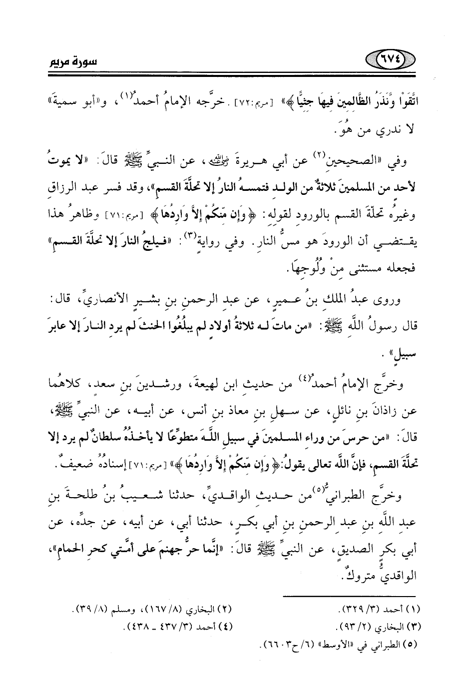 وقد فسر عبد الرزاقِ وغيرُه تحلّةَ القسم بالورودِ لقولِهِ: (وَإِن منكُمْ إِلاَّ وَارِدُهَا)