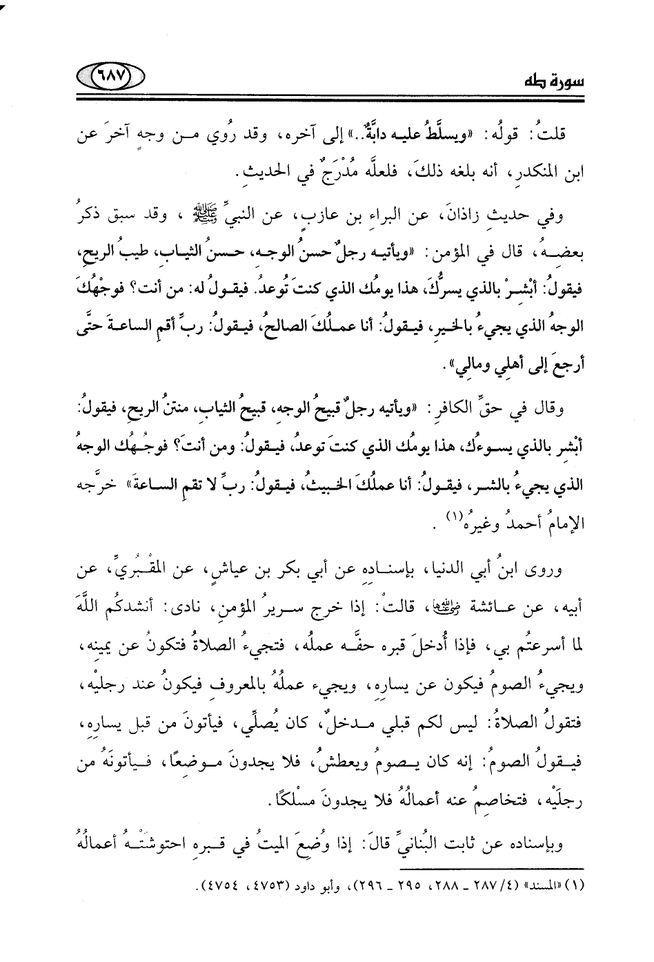 وفي حديثِ زاذانَ، عن البراءِ بن عازبٍ، عن النبيِّ - صلى الله عليه وسلم -، وقد سبق ذكرُ بعضِهُ، قال في المؤمن: "ويأتيه رجلٌ حسنُ الوجهِ، حسنُ الثيابِ، طيبُ الريحِ، فيقولُ: أبْشِرْ بالذي يسرُكَ، هذا يومُك الذي كنتَ تُوعدُ. فيقولُ له: من أنت؟