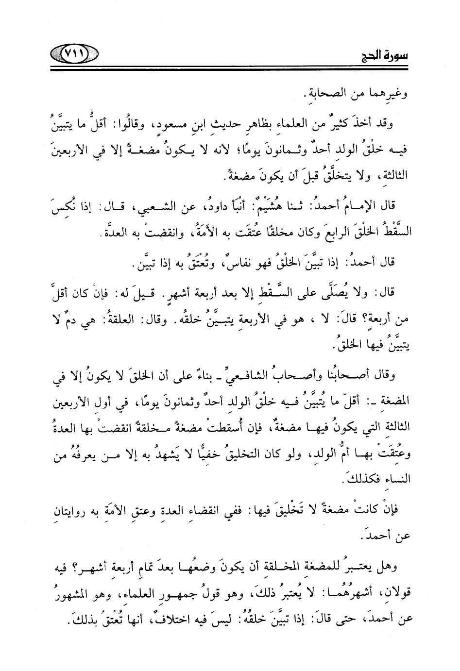 المضغةِ -: أقلّ ما يُتبيَّنُ فيه خلْقُ الولدِ أحدٌ وثمانون يومًا، في أولِ الأربعين