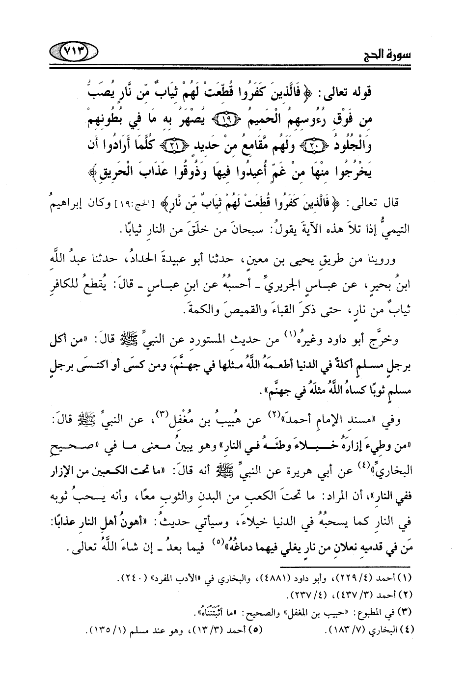 وهو يبينُ معنى ما في "صحيح البخاريِّ " عن أبي هريرة عن النبيِّ - صلى الله عليه وسلم - أنه قالَ: "ما تحت الكعبين من الإزار ففي النارِ".