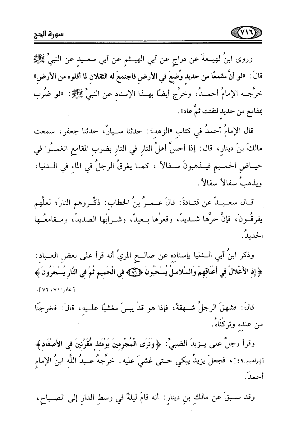 "لو أنَّ مقمعًا من حديدٍ وُضِعَ في الأرضِ فاجتمعَ له الثقلانِ لما أقلوه من الأرضِ "