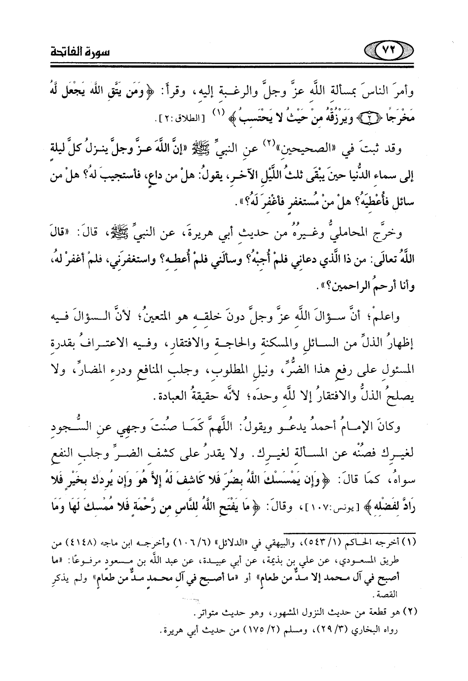وأمرَ الناسَ بمسألةِ اللَّهِ عزَّ وجلَّ والرغبة إليهِ، وقرأَ: (وَمَنْ يَتَّقِ اللَّهَ يَجْعَلْ لَهُ مَخْرَجًا (2) وَيَرْزُقْهُ مِنْ حَيْثُ لَا يَحْتَسِبُ) .
