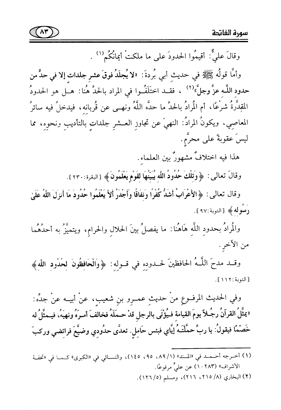 فقد اختَلَفُوا في المراد بالحدِّ هُنا: هل هو الحدودُ