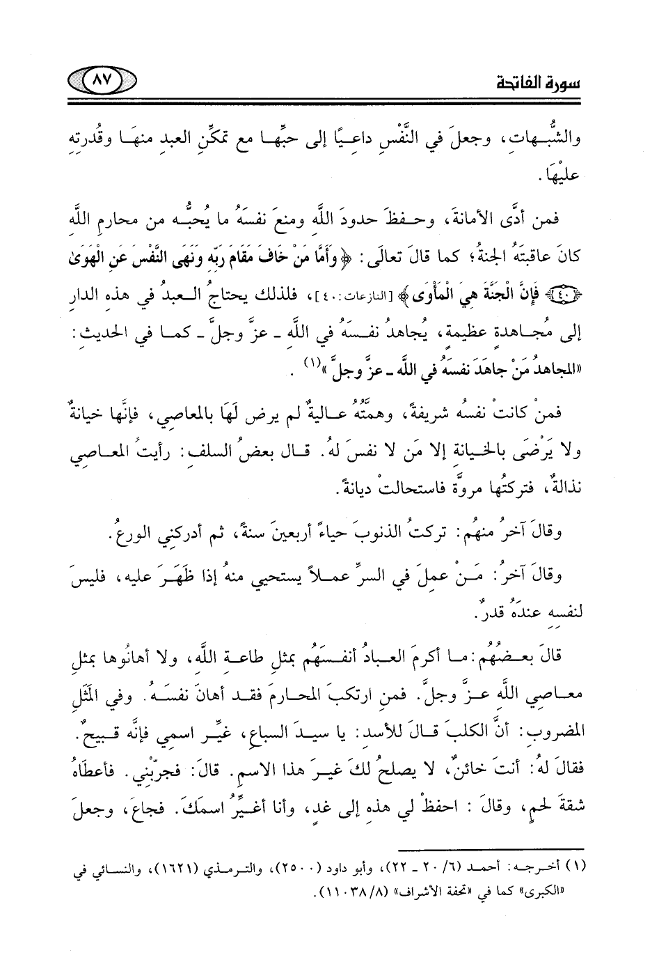 فلذلك يحتاجُ العبدُ في هذهِ الدارِ إلى مُجاهدةٍ عظيمةٍ، يُجاهدُ نفسَهُ في الله - عزَّ وجلَّ - كما في الحديثِ: