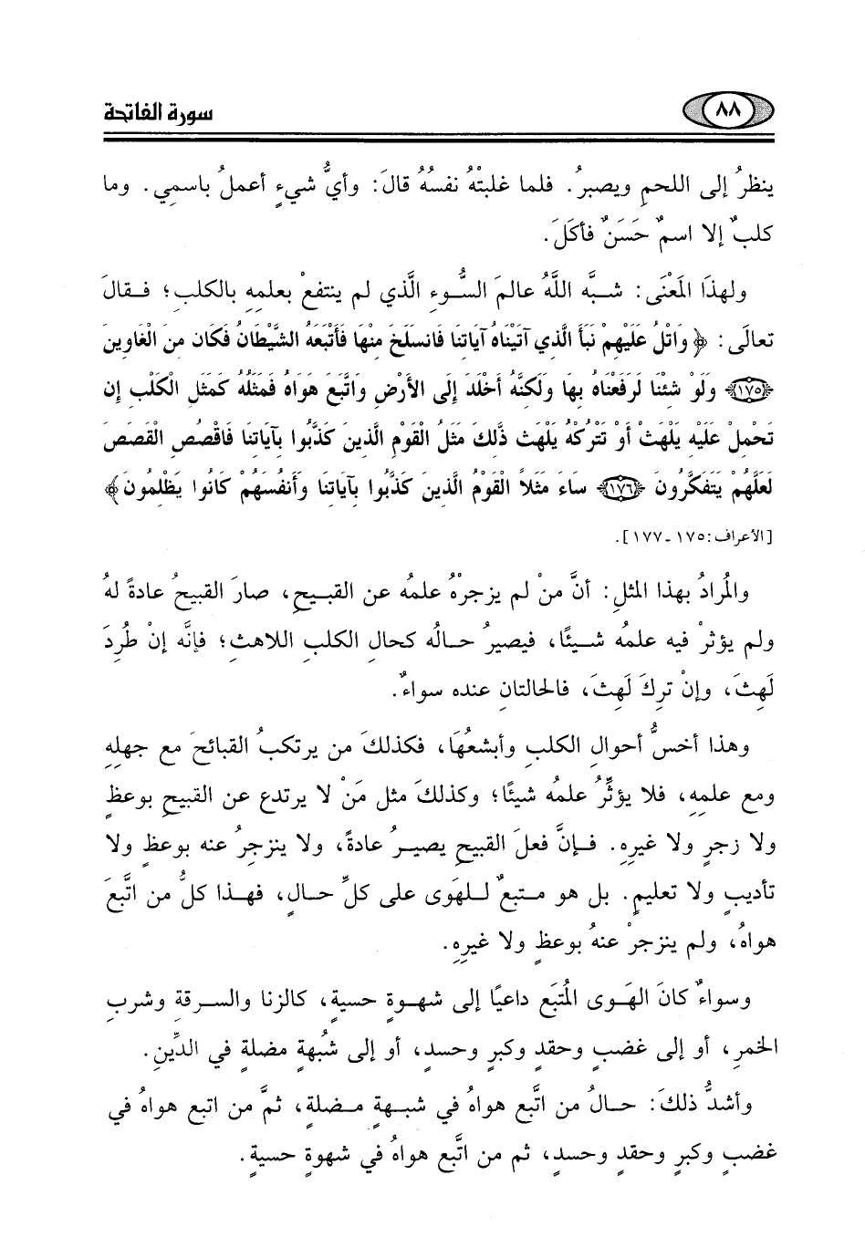 ولهذَا المَعْنَى: شبَّه اللَّهُ عالمَ السُّوءِ الَّذي لم ينتفعْ بعلمِهِ بالكلبِ " فقالَ