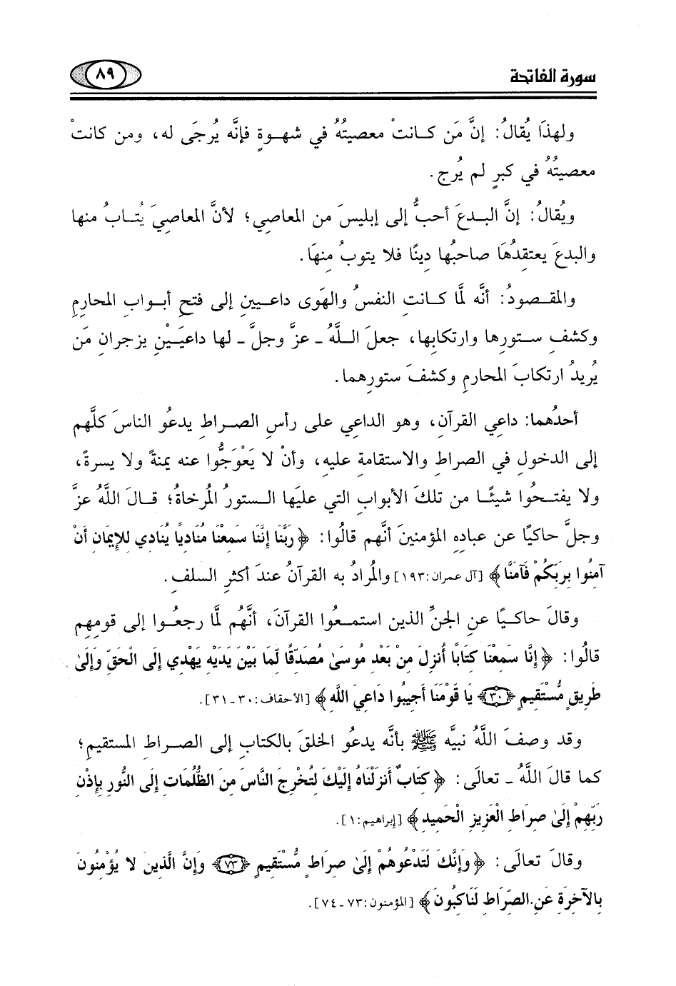 وقد وصفَ اللَهُ نبيَّه - صلى الله عليه وسلم - بأنَّه يدعُو الخلقَ بالكتابِ إلى الصراطِ المستقيم؛ كما قالَ اللَّهُ - تعالَى: (كِتَابٌ أَنْزَلْنَاهُ إِلَيْكَ لِتُخْرِجَ النَّاسَ مِنَ الظُّلُمَاتِ إِلَى النُّورِ بِإِذْنِ رَبِّهِمْ إِلَى صِرَاطِ الْعَزِيزِ الْحَمِيدِ (1) .