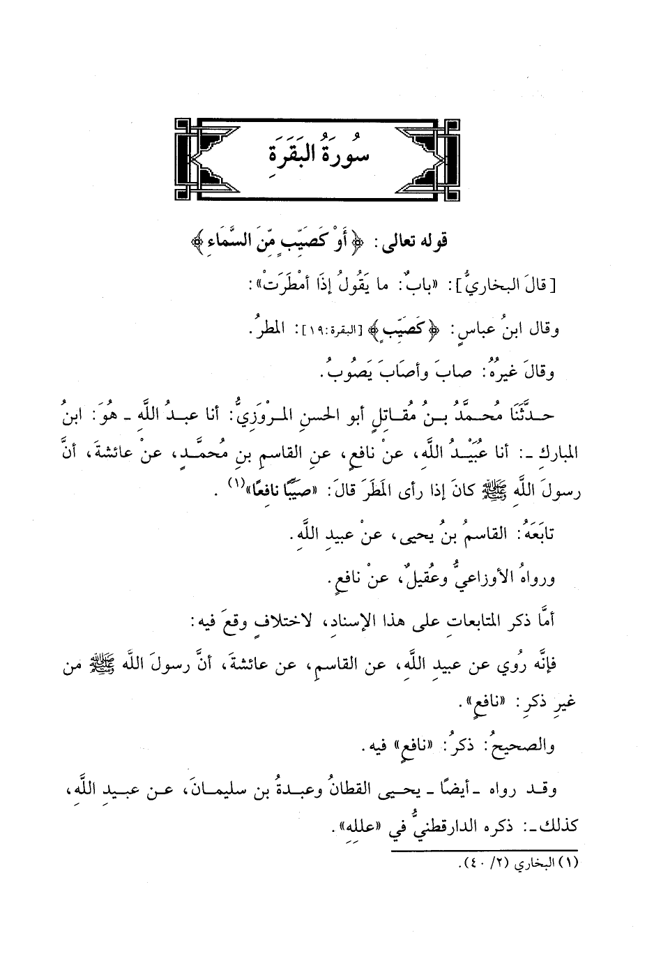 وقال ابنُ عباسٍ: (كَصَيبً) البقرة: 19،: المطرُ.