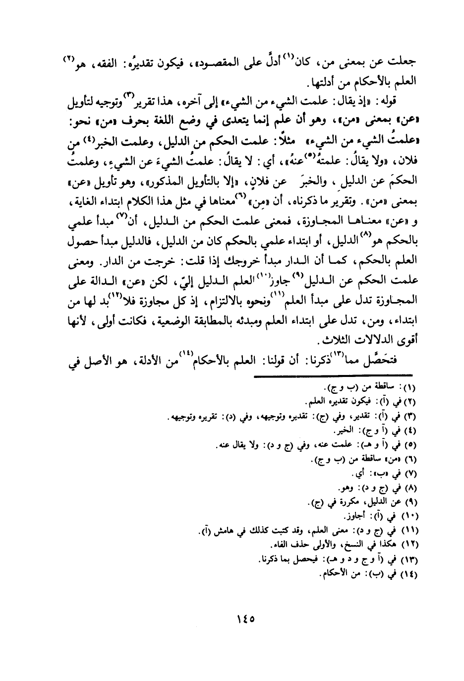جُعِلَتْ عَنْ بِمَعْنَى مِنْ، كَانَ أَدَلَّ عَلَى الْمَقْصُودِ» ، فَيَكُونُ تَقْدِيرُهُ: الْفِقْهُ، هُوَ الْعِلْمُ بِالْأَحْكَامِ مِنْ أَدِلَّتِهَا.