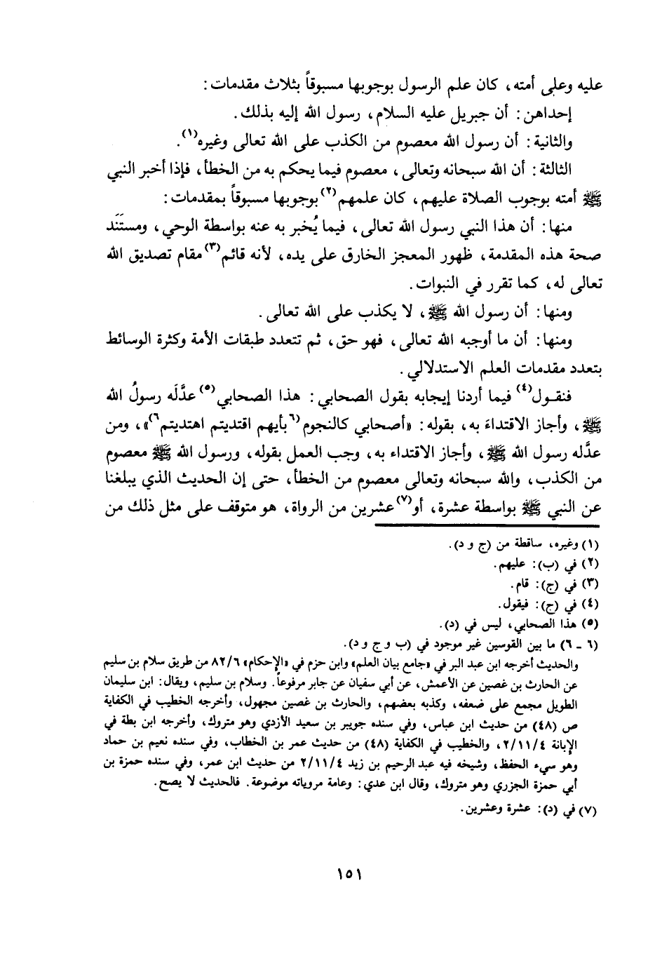 فَنَقُولُ فِيمَا أَرَدْنَا إِيجَابَهُ بِقَوْلِ الصَّحَابِيِّ: هَذَا الصَّحَابِيُّ عَدَّلَهُ رَسُولُ اللَّهِ صَلَّى اللَّهُ عَلَيْهِ وَسَلَّمَ، وَأَجَازَ الِاقْتِدَاءَ بِهِ، بِقَوْلِهِ: أَصْحَابِي كَالنُّجُومِ بِأَيِّهِمُ اقْتَدَيْتُمُ اهْتَدَيْتُمْ، وَمَنْ عَدَّلَهُ رَسُولُ اللَّهِ صَلَّى اللَّهُ عَلَيْهِ وَسَلَّمَ، وَأَجَازَ الِاقْتِدَاءَ بِهِ وَجَبَ الْعَمَلُ بِقَوْلِهِ وَرَسُولُ اللَّهِ صَلَّى اللَّهُ عَلَيْهِ وَسَلَّمَ، مَعْصُومٌ مِنَ الْكَذِبِ، وَاللَّهُ سُبْحَانَهُ وَتَعَالَى مَعْصُومٌ مِنَ الْخَطَأِ، حَتَّى إِنَّ الْحَدِيثَ الَّذِي يَبْلُغُنَا عَنِ النَّبِيِّ صَلَّى اللَّهُ عَلَيْهِ وَسَلَّمَ بِوَاسِطَةِ عَشَرَةٍ، أَوْ عِشْرِينَ مِنَ الرُّوَاةِ، هُوَ مُتَوَقِّفٌ عَلَى مِثْلِ ذَلِكَ مِنَ